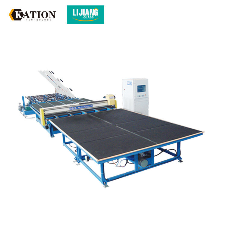 De automatische glassnijdenmachine bestaat uit chassismechanisme, straalmechanisme, worktable mechanisme, scherp messenmechanisme, die mechanisme, foto-elektrisch aftasten plaatsend mechanisme en elektrocontrolesysteem vervoeren.