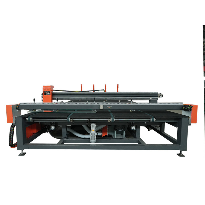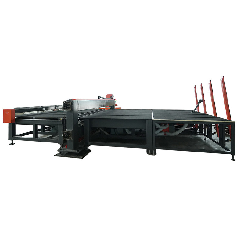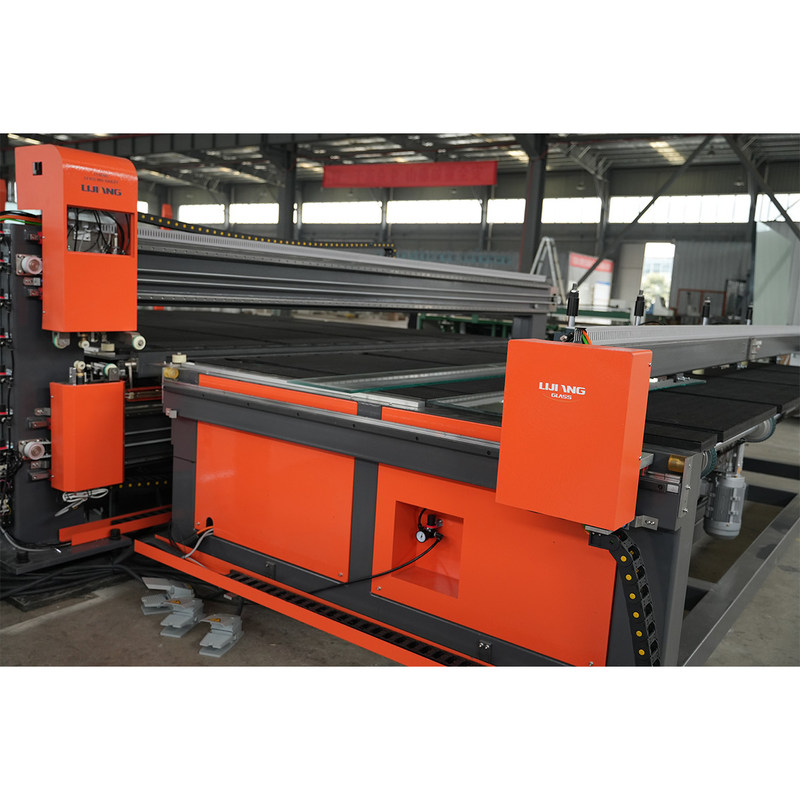 De machine hoeft alleen de vereiste glasbreedte in het touchscreen in te voeren, op de OK-knop te drukken en het positioneringsblok zal automatisch naar de ingestelde positie gaan.Handmatig helpen van het glas aan de positionering blok en druk op de snijknop om te beginnen met snijdenOp dit moment beweegt een glassnijder aan de bovenkant en onderkant zich tegen het glas en snijdt het glas (Y-richting).en vervolgens wordt het snijden en snijden van het gelamineerd glas afgerond door middel van rollen en schillen, bakken en scheuren, en het breken van de film van het lemmet.